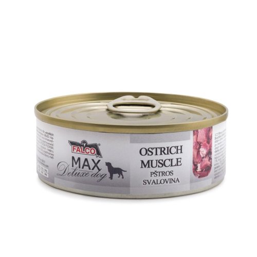Konzerva radu MAX Deluxe s pštrosou svalovinou má vynikajúce nutričné a diétne hodnoty, vysoký obsah horčíka, ktorý ovplyvňuje správnu funkciu svalov a nervov , ďalej potom obsahuje sodík a vápnik, ktorý priaznivo pôsobí na spevňovanie kostí v kĺboch. Všetko je v prírodnej forme.