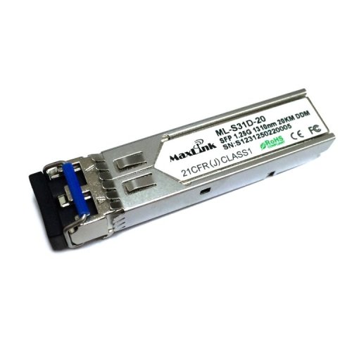 MaxLink 1.25G SFP optický modul, SM, 1310nm, 20km, 2x LC konektor, DDM ML-S31D-20 je 1.25G SFP modul s 1310nm vlnovou dĺžkou, dvoma LC konektormi a maximálnou vzdialenosťou 20km po singlemode optickom vlákne. SFP modul podporuje monitoring, čiže DDM funkciu.