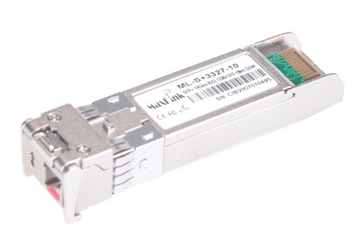 MaxLink 10G SFP+ optický modul, WDM(BiDi), SM, Tx 1330/Rx1270nm, 10km, 1x LC konektor, DDM ML-S+3327-10 je singlemode 10G SFP+ WDM modul na prenos dát pomocou jedného vlákna s jedným LC konektorom. Vlnová dĺžka (Tx/Rx) tohto modulu je 1330/1270nm a je vhodný na spojenie až na vzdialenosť 10km. Modul je "cisco compatibile" a je kompatibilný takmer so všetkými aktívnymi prvkami. LC konektory v SFP module majú brúsenie typu UPC.