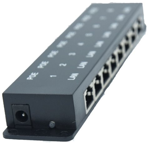 Popis produktu PoE injektor je vhodný pre napájanie až ôsmich zariadení. Do konektorov na jednej strane sa pripájajú ethernetové porty bez napájania napr. switch, na opačnú stranu sa pripájajú zariadenia využívajú pasívne PoE - napájanie po eth. kábla. Na napájanie sa využívajú dva nepoužité páry ethernetového kábla: 4,5 (kladný pól) a 7,8 (záporný pól). Napájanie sa pripája štandardným napájacím konektorom o veľkosti 2.1/5.5mm.
