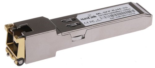 MaxLink SFP 10/100/1000M metalický modul, RJ-45, 100m, 1Gbps ML-SFP-RJ45-1G je gigabitový SFP metalický modul s konektorom RJ45 pre metalický kábel. Ide o cisco kompatiblný modul. Dosah modulu je 100m.