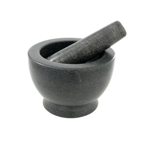 Mažiar je šikovná pomôcka v kuchyni. Behom chvíľky s ním vyrobíte tie najchutnejšie pesty, karí alebo potery. Do mažiara dáte požadované ingrediencie a otáčajte paličkou, kým nezískate peknú hmotu.Rozmer 15x11 cm.Materiál ž ula.Farba čierna.