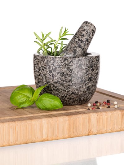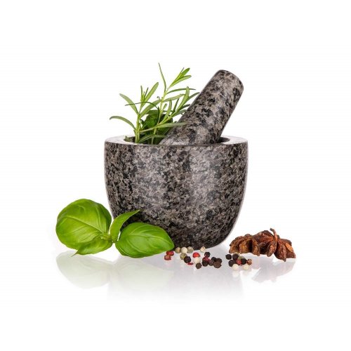 Žulový mažiar CULINARIA s tĺčikom pre klasické drvenie korenia, byliniek a výrobu domáceho pesta. Mažiar si nájde svoje miesto v každej kuchyni ako užitočný pomocník aj ozdoba.
