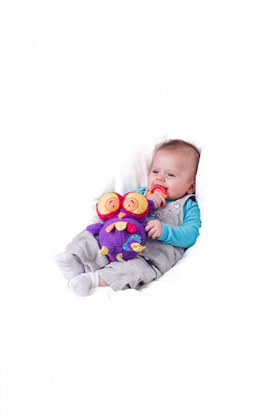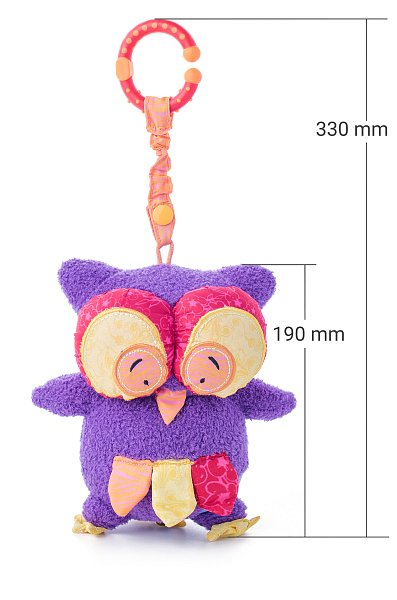 Sova HOKU je povahy pokojnej a priateľskej. Je veľmi múdra a rada by sa stala tvojím najlepším priateľom. Chcela by s tebou vyrastať a večer ti šepkať do uška všetky múdrosti sveta. Jej telíčko je vyrobené z mäkkého mazlivého plyšu, malé krídielka priamo nabáda k okusovaniu a gombík na chrbte potom k bližšiemu preskúmavaniu. Pri pohybe vydáva jemné zvonivé zvuky, pierka na brušku a ušká vydávajú zvuk stláčajúceho sa papiera. Môže s tebou cestovať, kam budeš chcieť. Aby si ju nestratil, môžeš ju totiž pripnúť úchytom ku kočíku. Keď budeš väčší, môžeš celý úchyt odopnúť a spinkať s ňou v postieľke po celú noc. Krásne sny. Vek: 0+. Rozmer: 16 x 17 cm. Dizajn nemeckej návrhárky Britty Hurter