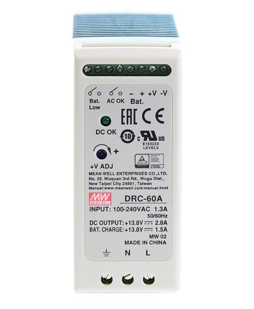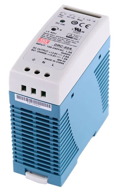 Priemyselný dvojkanálový napájací zdroj 13,8 V pre inštaláciu na DIN lištu s rozsahom vstupného napätia 90-264 V (AC) alebo 127-370 V (DC) a výkonom 60 W . Je určený pre aktívne prvky so zodpovedajúcim napájacím rozsahom. Životnosť MTBF (stredná doba medzi poruchami) je viac ako 504 100 hodín, navyše zdroj spĺňa vojenský štandard MIL-HDBK-217F .