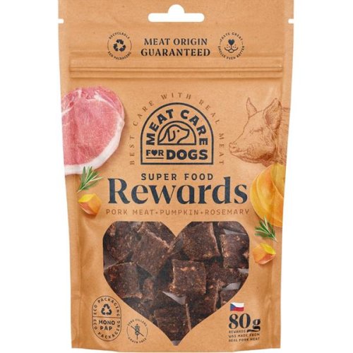 Zloženie: 84 % mäsa a výrobkov živočíšneho pôvodu (z toho bravčové 84 %), glycerín, celulóza, jablčná vláknina, sušená mletá tekvica 1 % (ekvivalent čerstvej tekvice 6 %), sušený rozmarín 0,5 % (ekvivalent čerstvého rozmarínu 3,5 %), chlorid sodný. proteín 25%, hrubá vláknina 3,9%, hrubé oleje a tuky 18%, hrubý popol 2,8%, vlhkosť 32% Dávkovanie: Aby podávanie maškrty neviedlo k rozvoju nadváhy, odoberte zakaždým zvieraťu z dennej dávky bežného krmiva množstvo zodpovedajúce dennej výživovej dávke maškrty. Psovi vždy zaistite dostatok čerstvej pitnej vody.