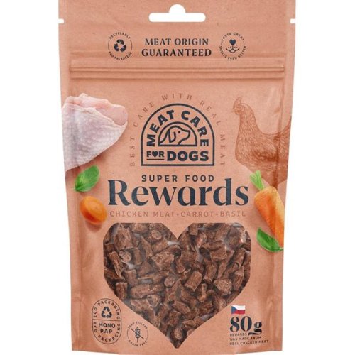Prírodné maškrty z čerstvého mäsa neobsahujú obilniny, pridané cukry ani umelé farbivá. Kuracie mäso je dobre stráviteľné a má nižší obsah tuku. Mrkva s vysokým obsahom provitamínu A zlepšuje trávenie, podporuje imunitu a má pozitívny vplyv na kvalitu kože a srsti. Bazalka má antivírusové a protizápalové účinky. Chuť a vôňa bazalky sú navyše pre psov veľmi atraktívne. Balené v plne recyklovateľnom obale v ochrannej atmosfére pre zaručenú kvalitu. Výroba prebieha pod denným veterinárnym dohľadom a podľa pravidla welfare. Ľahké zaúdenie na bukovej štiepke a vysoký podiel čerstvého mäsa dodáva maškrtám jedinečnú chuť a vôňu. Hlavné prednosti: