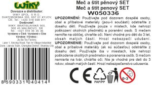 Meč so štítom penový. Veľkosť meča 57 cm.