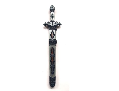 Tento kvalitný rytiersky meč s pošvou je ideálny pre všetkých malých rytierov! Dĺžka meča je 50 cm, čo je perfektná veľkosť pre hranie aj zbieranie. Meč je vyrobený z odolného materiálu a súčasťou je aj praktická pošva pre bezpečné uloženie. Skvelý doplnok na hranie na hrdinov, historické kostýmy alebo ako zberateľský kúsok.