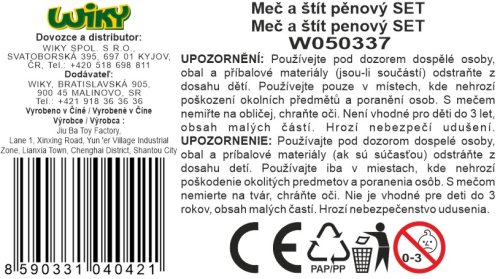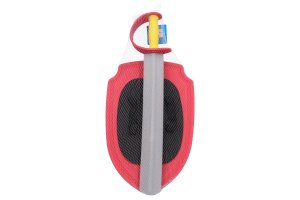 Meč so štítom penový červený. Veľkosť meča 57cm. Veľkosť štítu 27,5cmx41,5cm