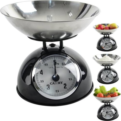 Retro váha s nerezovou miskou a váživosťou 5 kg.