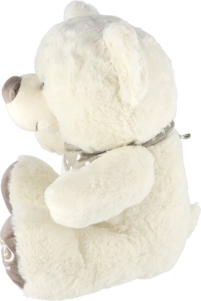 Roztomilý medvedík s mašľou je vhodným maznáčikom nielen do postieľky. Slúži deťom na maznanie, ale vytvára aj dekoráciu detského kráľovstva a citový vzťah. Hračky z plyšu sú vhodné pre deti všetkých vekových kategórií, ale sú obľúbené aj u dospelých. Veľkosť medvedíka je 35 cm Vhodné pre deti od 0 mesiacov