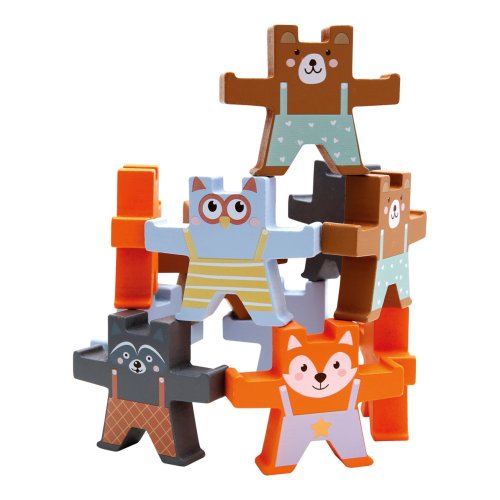 Ukladajte roztomilé medvedí artistov tak, aby ste výslednú stavbu nezhodili práve Vy, ale Váš protihráč. Zvýšte obtiažnosť a ukladajte figúrky tak, aby boli dve susediace vždy rôzne. Vďaka pútavému sfarbeniu a vzorom budú medvedíci atraktívnou ozdobou poličky v detskej izbe. Herné dieliky sú veľmi robustné, vyrobené s použitím masívneho dreva a nezávadných farieb. Hlavné vlastnosti:12 hracích figúrokrobustné prevedenie z masívneho dreva