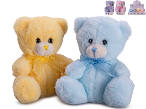 Medvedík plyšový 12 cm sediaci s mašľou - mix farieb (ružová, modrá, žltá, fialová)