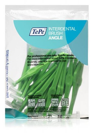 Medzizubné kefky Angle 0,8 mm (zelené) sú vybavené zahnutým držiakom do pravého uhla, ktorý umožňuje ľahký prístup k zadným zubom a do horšie dostupných medzizubných priestorov. Ergonomická dlhá rukoväť zaisťuje pohodlné a kontrolované čistenie. Jemné, vysoko kvalitné vlákna účinne odstraňujú povlak a zvyšky jedla a zároveň sú šetrné k ďasnám.