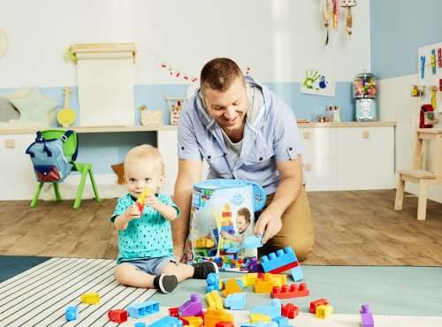 Rozvíjajte fantáziu svojho malého staviteľa s Mega Bloks Veľkým vrecom kociek - modrý, v ktorom nájdete 80 veľkých farebných kociek. Tieto kocky, ktoré sú ideálne pre malé ručičky, sa dajú ľahko uchopiť a jednoducho skladať na seba, čo pomáha rozvíjať jemnú motoriku, kreativitu a predstavivosť. Kocky do seba ľahko zapadajú a tiež sa dajú ľahko rozobrať. Po skončení hrania je možné kocky uložiť späť do vreca a ľahko ich upratať. A čo je najlepšie, tieto kocky je možné kombinovať s akoukoľvek hračkou alebo sadou kociek Mega Bloks, takže sa hranie vášho batoľaťa predĺži na dlhé hodiny. Ideálne pre malých staviteľov vo veku od 1 roku.