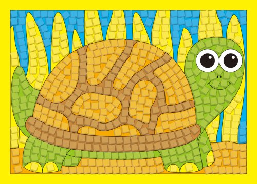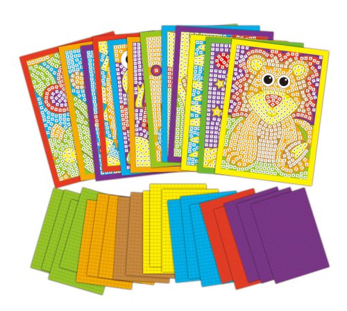 Súprava obsahuje 12 obrázkov, na ktoré deti lepia farebné penové kúsky, z ktorých vznikne nádherná mozaika. Na obrázkoch sú vyznačené polia s číslami, na ktoré sa jednoducho lepia penové kúsky zodpovedajúcej farby. Lepenie prebieha bez lepidla, stačí len odlepiť penové kúsky z platiačka a prilepiť na obrázok.