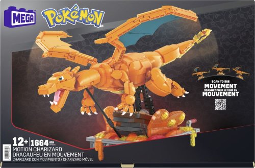 Pocíťte žiaru s touto veľmi detailne prepracovanou a ľahko pózovateľnou stavebnicou Charizard. Postavte model a otáčaním kľučky sledujte, ako sa Charizard pohybuje sem a tam, ako sa mu trepotajú krídla a pohybuje láva. Do detailu prepracovaná základňa obsahuje vymeniteľné menovky v rôznych jazykoch.