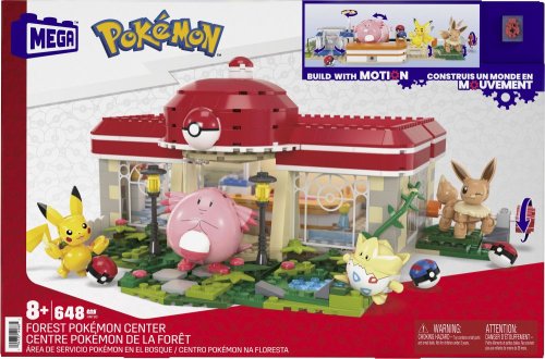 Vitajte v centre Pokémonov! Toto ikonické miesto si teraz môžete postaviť ako set so štyrmi známymi pokémonmi: Pikachu, Chansey, Eevee a Togepi. Otočením kľučky uvidíte Chanseyho, ako tancujú, Pikachu a Eevee, ako sa hrajú na schovávačku, a Togepiho, ako otvára dvere.