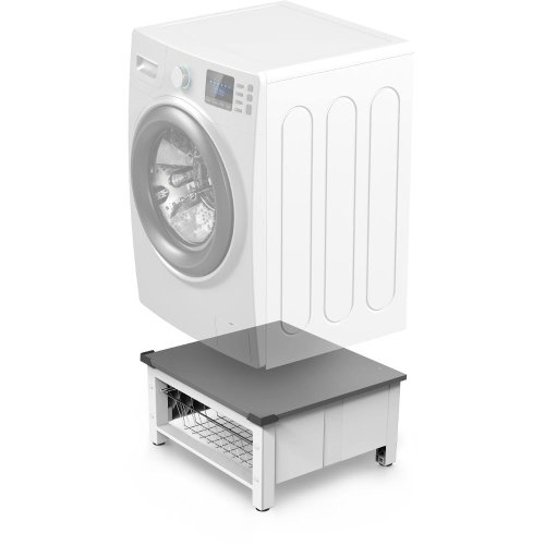 Vyrobený z technopolyméru Výsuvný košík Možno použiť ako podstavec pod práčku či sušičku Jednoduchá montáž výrobku Stabilita je zaistená vďaka 6 m dlhým pásom s kovovou prackou Nastaviteľnénožičky v prípade nerovnosti podlahy