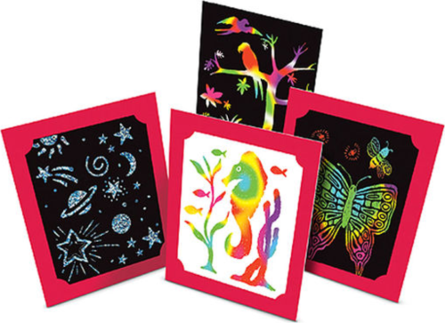 škrabacie obrázky prebúdza kreativitu a nadšenie a nielen malé výtvarníky zamestnajú na dlhé hodiny papier je potiahnutý čiernou vrstvou skrývajúcou podklad s farebným efektom sada obsahuje: 16ks obrázkov, 3 stojančeky na obrázky, 2ks vyškrabovacieho pera a šablónky je možné vyškrabávať podľa vlastnej fantázie sade veľkosť jedného obrázku: 21,5 x 14 cm