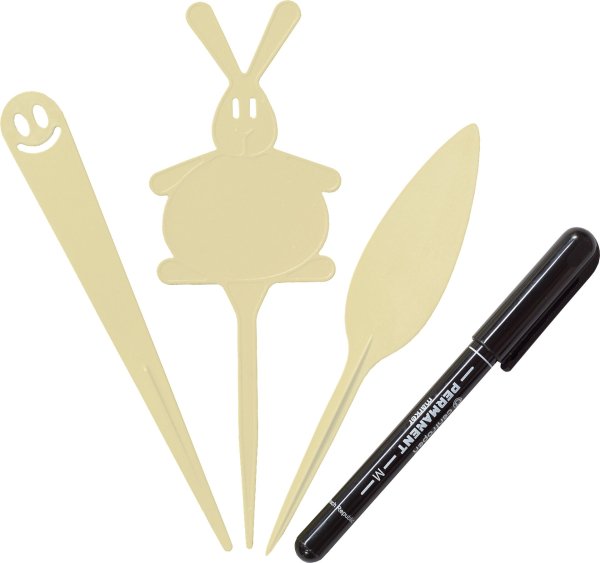 Menovky zapichovacie k popisom rastlín a výsevov. Sada obsahuje 9 kusov menoviek a liehový fix.