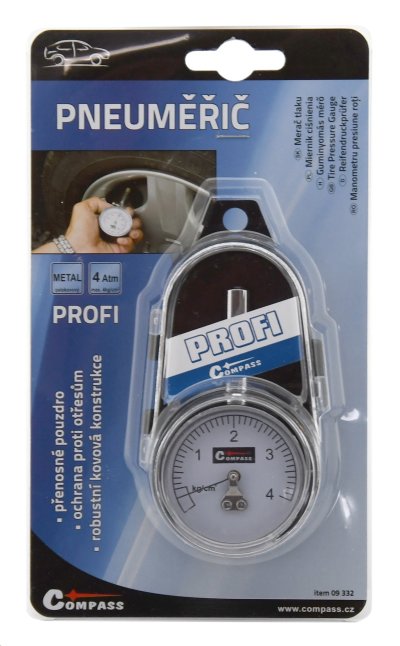 Compass PROFI je profesionálny celokovový merač tlaku v pneumatikách . Telo merača je opatrené tlačidlom pre vynulovanie po nameraní hodnôt. Zároveň ho možno použiť na zníženie tlaku v pneumatike pozvoľným stlačením.