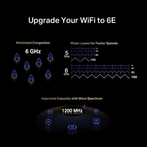 Bezdrôtové frekvencie: 2.4 + 5 + 6 GHz (triple band)