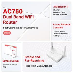 Jednotka MR20 ponúka vysoko funkčnú rodičovskú kontrolu, ktorá pomáha zaistiť bezpečnosť vašich detí v on-line svete. MR20 umožňuje jednoducho vytvoriť časové rozvrhy pre prístup k Wi-Fi, nastaviť časové obmedzenia a blokovať nevhodný obsah pre rôznych členov rodiny. Môžete dokonca pozastaviť prístup k internetu, keď nastane čas večere, aby všetci bez pripomienok odložili pripojené zariadenia.