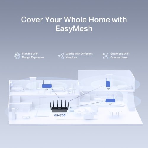 Vďaka Wi-Fi 7 si na MR47BE užijete plynulé streamovanie v rozlíšení 8K, VR/AR, videokonferencie, on-line hranie a rýchle sťahovanie.