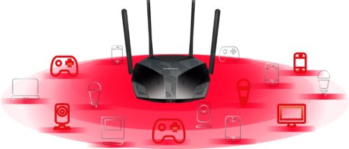 Vďaka MU-MIMO a OFDMA technológii umožňuje routeru komunikovať s viacerými zariadeniami súčasne, čo umožňuje pripojeným zariadeniam dosiahnuť vyššie rýchlosti ako štandardné AC routery, čo zvyšuje celkovú priepustnosť siete.