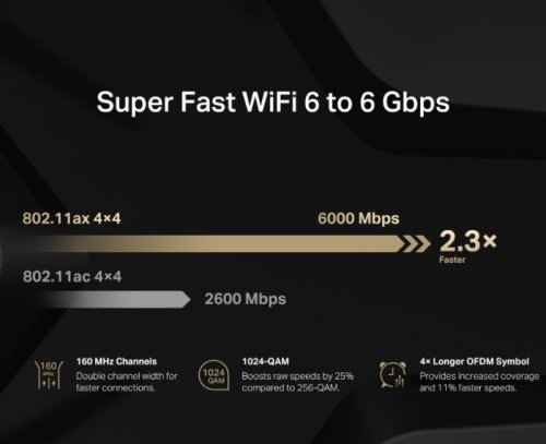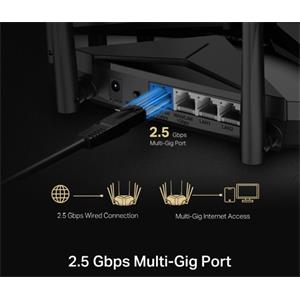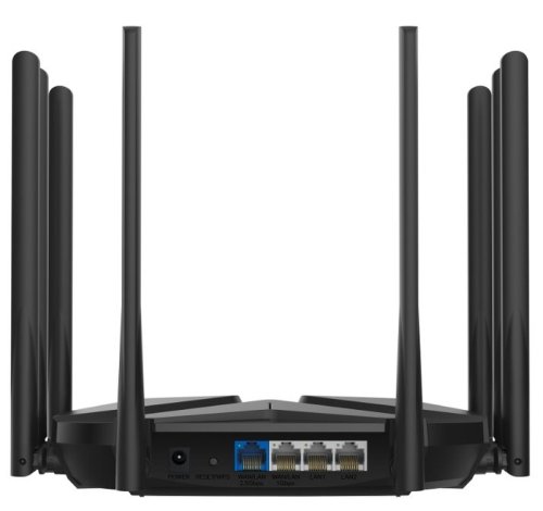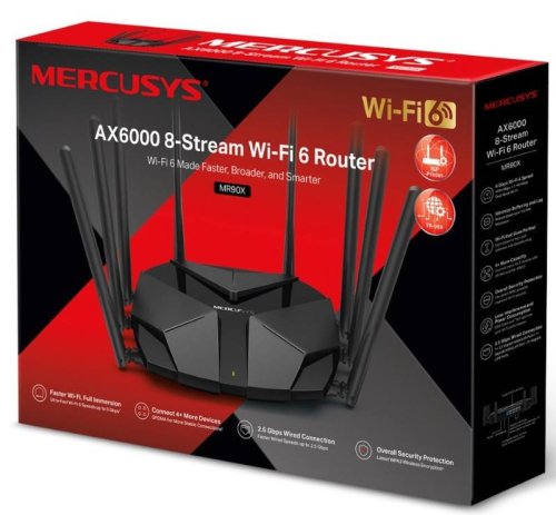 Bezdrôtový router od výrobcu Mercusys predstavuje vysoko výkonný Dual Band Wi-Fi 6 router, špecificky koncipovaný pre domáce využitie a vysokú rýchlosť. S implementáciou Dual Band Wi-Fi 6, podporou štandardov 802.11a/b/g/n/ac/ax a technológiou 4x4 MIMO ponúka prenosovú rýchlosť 4804 Mbps v pásme 5 GHz a 1148 Mbps v pásme 2.4 GHz. Vďaka ôsmim statickým anténam a využitiu pokročilých technológií, ako sú OFDMA, MU-MIMO, šifrovanie WPA3 a Beamforming, zaručuje stabilné a zabezpečené pripojenie. Router taktiež poskytuje podporu VPN protokolov OpenVPN a PPTP, čo výrazne prispieva k celkovej bezpečnosti pripojenia. Router disponuje (2) Gigabit LAN + (1) Gigabit LAN/WAN + (1) 2.5 - Gigabit WAN porty, čím uspokojí požiadavky na vysokorýchlostný prenos dát. Router má nádherný moderný design, a preto sa radí medzi optimálne voľby pre moderné domácnosti.