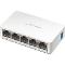 OBSAH BALENIA 5portový 10/100 Mbps stolný switch MERCUSYS MS105, napájací adaptér, rýchla inštalačná príručka