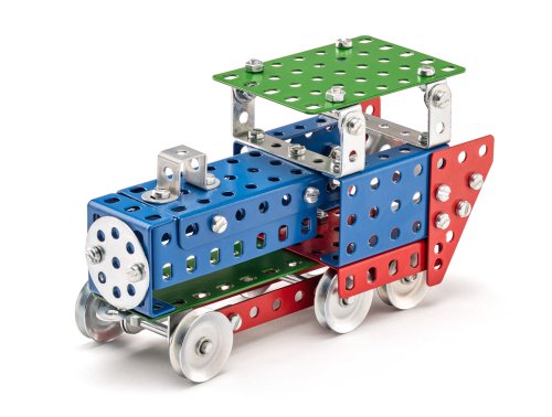 Z tejto jednovrstvovej stavebnice sa dá zostaviť 10 rôznych modelov Napr. lokomotívu, nákladný vagón a niekoľko ďalších železničných modelov