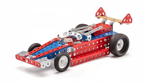 Ponorte sa do sveta kreativity a zábavy so stavebnicou Merkúr 010 Formule. Táto jedinečná sada je ideálnym nástrojom na rozvoj technických zručností a predstavivosti detí. Zo stavebnice Merkúr 010 Formule je možné podľa návodu zostaviť 10 rôznych modelov. Malý konštruktéri môžu zostaviť aj model podľa svojich predstáv, fantázii sa medze nekladú. Stavebnica obsahuje kvalitné kovové diely, ktoré sa ľahko spájajú skrutkami, čo podporuje rozvoj jemnej motoriky, logického myslenia a sústredenia. Sada obsahuje: 223 dielikov. Úroveň Merkúr obtiažnosti: 3. Balené v krabičke. Rozmery balenia: 18 x 26 x 5 cm. Vek: 5+