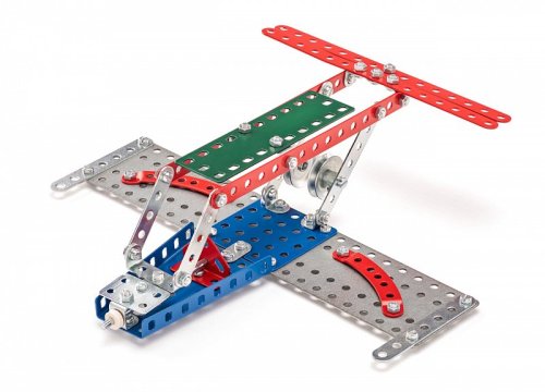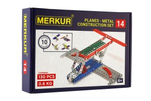 Klasická jednovrstvová stavebnica Merkúr 14 - lietadlo. Stavebnica obsahuje súčiastky potrebné na stavbu modelov lietadiel. Súčasťou stavebnice je návodová knižka s návodom na stavbu 10 rôznych modelov. Táto jedinečná sada je ideálnym nástrojom na rozvoj technických zručností a predstavivosti detí. Stavebnica obsahuje kvalitné kovové diely, ktoré sa ľahko spájajú skrutkami, čo podporuje rozvoj jemnej motoriky, logického myslenia a sústredenia. Počet dielikov: 130. Úroveň Merkúr obtiažnosti: 2. Farby, veľkosť a vzhľad výrobku sa môžu líšiť oproti uvedeným fotografiám. Balené v krabičke. Rozmery balenia: 18 x 26 x 5 cm. Nevhodné pre deti mladšie ako 3 roky. Vek: 5+