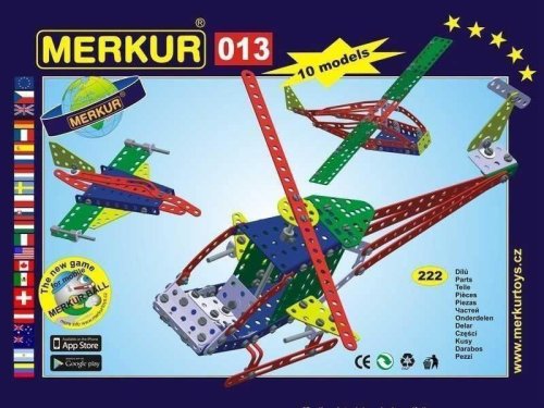 Klasická jednovrstvová stavebnica Merkúr 13 - vrtuľník. Stavebnica obsahuje súčiastky potrebné na stavbu modelov leteckej techniky. Súčasťou stavebnice je návodová knižka s návodom na stavbu 10 rôznych modelov. Táto jedinečná sada je ideálnym nástrojom na rozvoj technických zručností a predstavivosti detí. Stavebnica obsahuje kvalitné kovové diely, ktoré sa ľahko spájajú skrutkami, čo podporuje rozvoj jemnej motoriky, logického myslenia a sústredenia. Počet dielikov: 222. Úroveň Merkúr obtiažnosti: 2. Farby, veľkosť a vzhľad výrobku sa môžu líšiť oproti uvedeným fotografiám. Balené v krabičke. Rozmery balenia: 18 x 26 x 5 cm. Nevhodné pre deti mladšie ako 3 roky. Vek: 5+