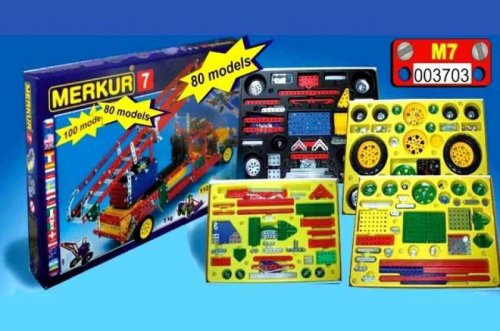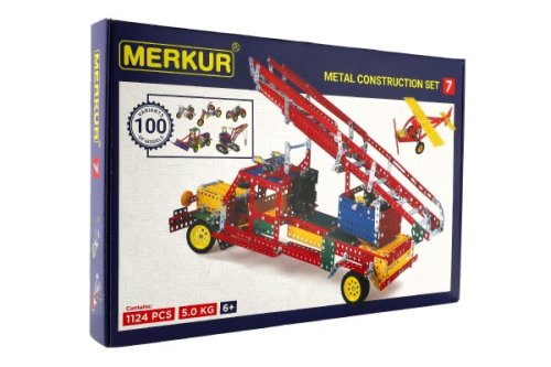 Veľká štvorvrstvová klasická stavebnica Merkúr 7 - veľký set. Stavebnica obsahuje okrem základnej zostavy dielov aj súčiastky nutné pre stavbu veľkého požiarneho auta, veľkých žeriavov a ďalších modelov. Súčasťou stavebnice je veľká návodová knižka s návodom na stavbu 100 modelov. Táto jedinečná sada je ideálnym nástrojom na rozvoj technických zručností a predstavivosti detí. Stavebnica obsahuje kvalitné kovové diely, ktoré sa ľahko spájajú skrutkami, čo podporuje rozvoj jemnej motoriky, logického myslenia a sústredenia. Počet dielikov: 1335. Úroveň Merkúr obtiažnosti: 4. Rozmery balenia: 36 x 54 x 6 cm. Nevhodné pre deti mladšie ako 3 roky. Vek: 7+