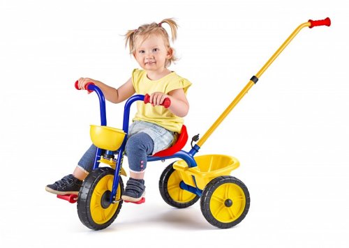 Trojkolka Baby Trike je určená pre najmenšie deti Je osadená kvalitnými plastovými kolesami so šľapkami vpredu Plastové odkladacie priestory sú vpredu aj vzadu Vodiacu tyč je možné podľa potreby predĺžiť, skrátiť alebo úplne odstrániť