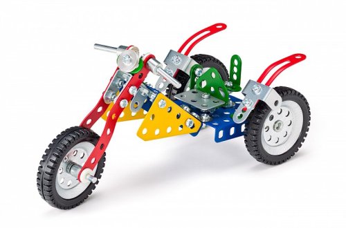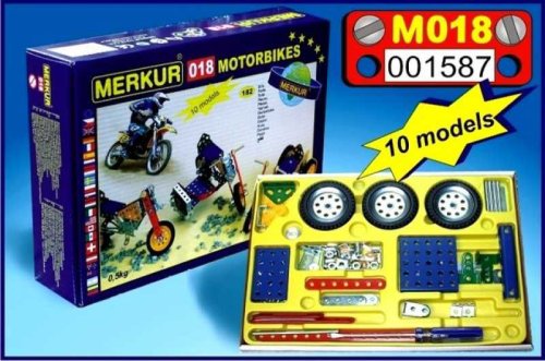 Klasická jednovrstvová stavebnica Merkúr 18 - motocykle. Stavebnica obsahuje súčiastky potrebné na stavbu modelov motocyklov. Súčasťou stavebnice je návodová knižka s návodom na stavbu 10 rôznych modelov. Táto jedinečná sada je ideálnym nástrojom na rozvoj technických zručností a predstavivosti detí. Stavebnica obsahuje kvalitné kovové diely, ktoré sa ľahko spájajú skrutkami, čo podporuje rozvoj jemnej motoriky, logického myslenia a sústredenia. Počet dielikov: 174. Úroveň Merkúr obtiažnosti: 3. Farby, veľkosť a vzhľad výrobku sa môžu líšiť oproti uvedeným fotografiám. Balené v krabičke. Rozmery balenia: 18 x 26 x 5,3 cm. Nevhodné pre deti mladšie ako 3 roky. Vek: 5+