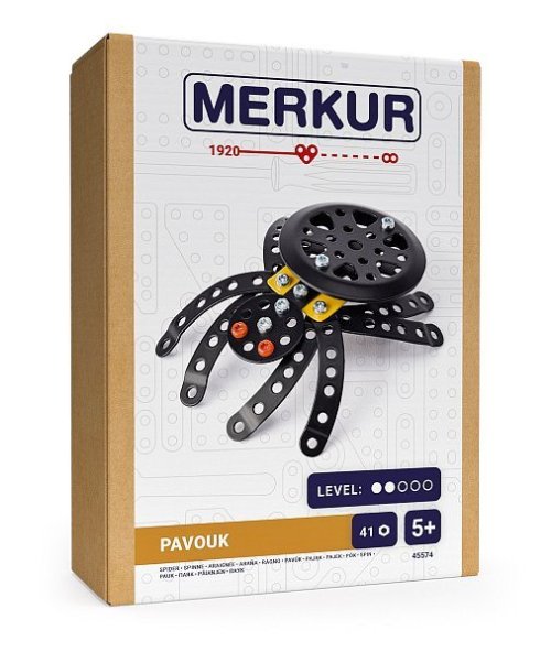 Kovový model Pavúka z kolekcie hmyzákov obsahuje súčiastky potrebné na zostavenie pavúka. V balení nájdete podrobný návod, Merkúr sadu náradia a unikátne Merkúr diely. Merkúr diely sú univerzálne a tak vás neobmedzia v akejkoľvek modifikácii a nápade. Stavebnicu tak môžete zostaviť podľa priloženého návodu alebo čisto podľa svojich predstáv. So zostavenými modelmi sa dá hrať, sú veľmi odolné. Podporuje a rozvíja manuálnych schopnosti, logické myslenie, sústredenie. Rozmer balenia: 18x13,5x5cm cm.Rozmer výrobku: 15x10x9cm cm.Počet dielikov:41. Nevhodné pre deti do troch rokov. Odporúčaný vek: 5+
