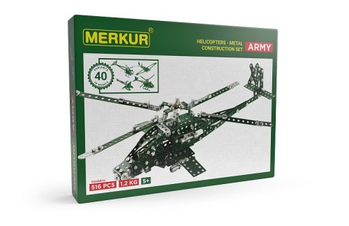 Dvojvrstvová stavebnica Merkur Helikopter Set je ideálna pre všetkých, ktorí sa chcú ponoriť do vojnovej atmosféry a vyskúšať si stavbu bojového vrtuľníka. Či už podľa vlastnej fantázie, alebo podľa vyobrazených návodov, ktorých je v priloženej knižke 40. Táto jedinečná sada je ideálnym nástrojom na rozvoj technických zručností a predstavivosti detí. Stavebnica obsahuje kvalitné kovové diely, ktoré sa ľahko spájajú skrutkami, čo podporuje rozvoj jemnej motoriky, logického myslenia a sústredenia. Sada obsahuje: 516 dielikov. Úroveň Merkúr obtiažnosti: 3. Balené v krabičke. Rozmery balenia: 27 x 36 x 5,5 cm. Vek: 5+