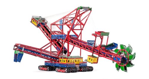 Legendárna stavebnica, po ktorej od zahájenia výroby v 70. rokoch minulého storočia túžil snáď každý chlapec aj jeho otec. Obrie kolesové bager je najslávnejšia a najpredávanejšia stavebnica Merkúr. Jeho stavba vám zaberie minimálne 40 hodín a zostaviť všetkých 3449 dielikov si vyžaduje skutočnú trpezlivosť. Stavebnica obsahuje kvalitné kovové diely, ktoré sa ľahko spájajú skrutkami, čo podporuje rozvoj jemnej motoriky, logického myslenia a sústredenia. Sada obsahuje: 3449 dielikov. Úroveň Merkúr obtiažnosti: 5. Balené v krabičke. Váha stavebnice: 17,5 kg. Rozmery balenia: 37 x 55 x 9 cm. Nevhodné pre deti do 3 rokov. Vek: 6+