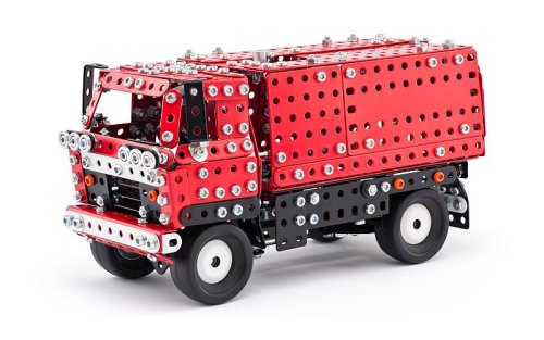 Spaľujúce slnko, piesočné duny a rev motorov. Hoci sa dnes slávna rely Paríž-Dakar nejazdí len v piesku púšte, práve ten zostáva jej najznámejším obrazom. Staňte sa aj vy vyzývateľom prírody a ostatných dobrodruhov v tomto drsnom motoristickom závode. Zo stavebnice je možné zostaviť dve varianty kovového modelu auta Púštny kamión - so zakrytou aj otvorenou korbou. Nechýbajú zrkadlá, reflektory, blatníky a gumové kolieska. So zostaveným modelom sa dá hrať, je veľmi odolný. V balení nájdete podrobný návod. Merkúr diely sú univerzálne, a tak vás neobmedzia v akejkoľvek modifikácii a nápade. Stavebnicu tak môžete zostaviť podľa priloženého návodu alebo čisto podľa svojich predstáv. Podporuje rozvoj manuálnych zručností, logického myslenia a sústredenia. Počet dielikov: 788 ks. Úroveň Merkúr obtiažnosti: 4. Balené v krabičke. Rozmery modelu: 23 x 22,5 x 8,5 cm. Rozmer balenia: 23 x 33,5 x 5,7 cm. Vek: 8+