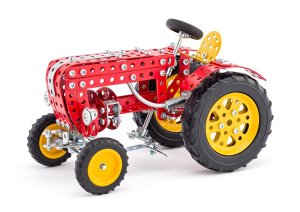 Ponorte sa do sveta kreativity a zábavy so stavebnicou Retrotraktor od spoločnosti Merkúr. Červený Retrotraktor s funkčným riadením a pohyblivou prednou osou privádza na myseľ staré dobré časy na statku. Pre všetkých, ktorí majú radi klasiku a nostalgiu poľnohospodárskych strojov. Táto jedinečná sada je ideálnym nástrojom na rozvoj technických zručností a predstavivosti detí. Vďaka kovovým dielikom si malí stavitelia môžu postaviť model vozidla. Stavebnica obsahuje kvalitné kovové diely, ktoré sa ľahko spájajú skrutkami, čo podporuje rozvoj jemnej motoriky, logického myslenia a sústredenia. Sada obsahuje: 333 dielikov. Úroveň Merkúr obtiažnosti: 3. Balené v krabičke. Rozmery modelu: 13, 5 x 11 x 21 cm. Rozmery balenia: 23 x 33,5 x 5,7 cm. Vek: 5+