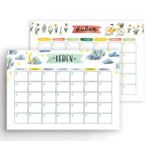 Mesačný plánovač - nedatovaný pomocník, ktorý vám pomôže zorganizovať každý mesiac vášho roka bez toho, aby ste zmeškali akúkoľvek dôležitú udalosť. S 12 listami, každý zdobený originálnou ilustráciou zodpovedajúcou danému mesiacu, sa tento plánovač stane nielen praktickým, ale aj krásnym doplnkom vášho domova alebo pracovného priestoru. Formát A4 poskytuje dostatočne veľký priestor na zapisovanie všetkých vašich plánov, schôdzok, prednášok v škole alebo napríklad prvého rande. Vďaka tomu, že listy nie sú spojené, môžete aktuálny mesiac vždy mať na očiach – či už na stole, pripnutý na chladničku, alebo akokoľvek inak, aby vám nič dôležité neuniklo.