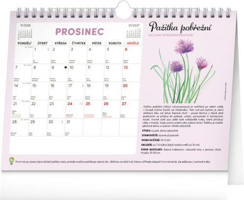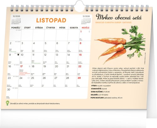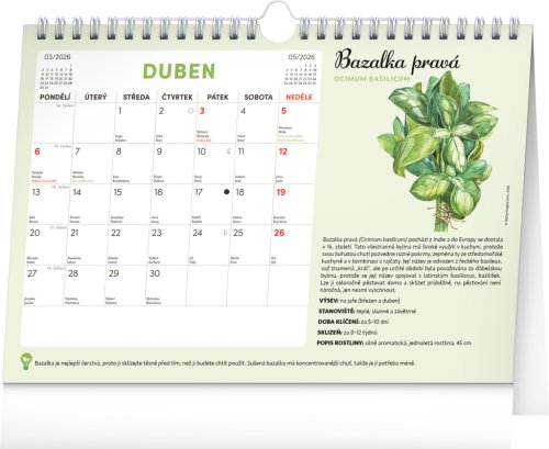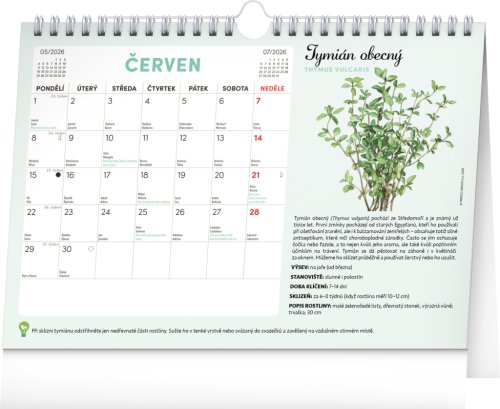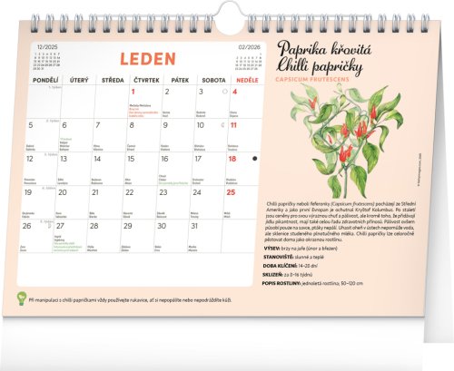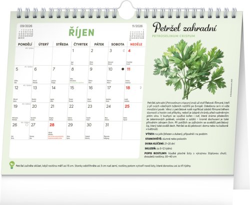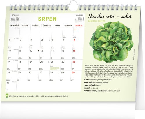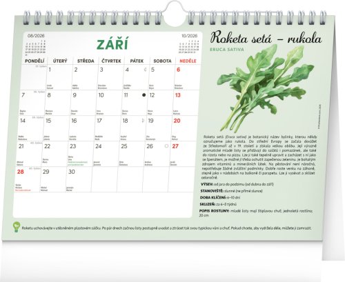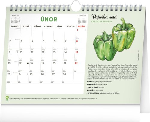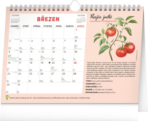 Objavte jedinečný stolný kalendár, ktorý vám každý mesiac ponúkne nielen dostatok priestoru na poznámky, ale aj semienka rastlín, ktoré si môžete ľahko vypestovať doma. Stačí zasadiť špeciálny semienkový papier do hliny, zalievať a sledovať, ako vám rastú paradajky, bazalka, medovka a ďalšie bylinky či zelenina. Ideálne pre všetkých, ktorí chcú zažiť radosť z pestovania a mať kúsok záhradky priamo pri sebe doma. Obahuje mesačné kalendárium s českými sviatkami a meninami a 12 hárkov špeciálneho papiera so semienkami.