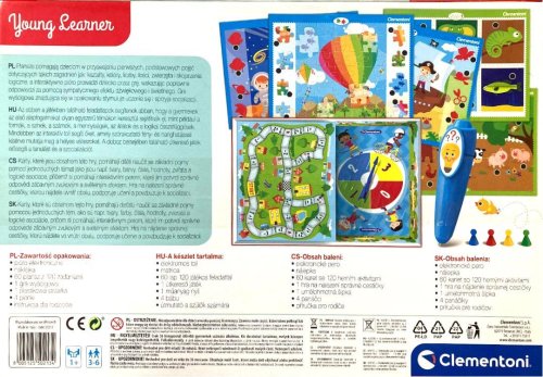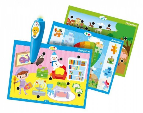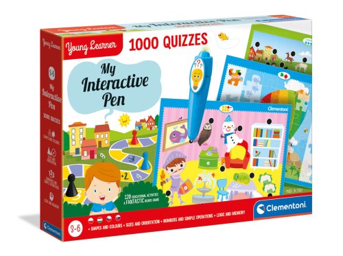 Vzdelávacia sada Clementoni – Interaktívne pero obsahuje 32 herných kariet so 64 aktivitami. Určovanie písmen, slov, čísel, množstva, tvarov a farieb. Viac ako 1000 kvízov testuje deti a ich priateľov. Hra je vhodná aj pre 2 a 4 hráčov, čím sa stáva zábavnejšou a viac stimulujúcou. Deti sa učia samostatne vďaka prehovorených odpovediam, ktoré ich podporujú pri hre. Koncipované, navrhnuté a vyvinuté v Taliansku. Batérie: 3xLR41 (nie sú súčasťou balenia). Jazykové mutácie: SK, SK, PL, HU. Rozmer balenia: 45,1 x 47 x 7 cm. Vek: 3+