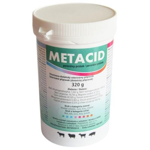 Kombinovaný prípravok určený na úpravu kyslého prostredia bachora súvisiaceho s metabolickou acidózou a obnove porušenej bachorovej a črevnej mikroflóry. Svetlohnedý prášok. Použitie: Dysfunkcia predžalúdkov (preplnenie a hyperacidita bachora). Doplnok krmiva pri nadmernom prívode ľahko stráviteľných glycídov (cukrovej repy, obilných šrotov, kukurice, melasy, zemiakov a pod.) a pri rýchlom prechode na tieto krmivá. Alimentárna intoxikácia. Po liečbe antibiotikami, sulfónamidmi, dezinficienciami. Po terapii antiparazitikami. Pri poruchách metabolizmu vápnika a nedostatku niektorých minerálnych látok a stopových prvkov. Prevencia silných hnačiek. Cieľový druh: Hovädzí dobytok, teľatá, ovce, kozy, ošípané. Zloženie: Natrii dihydrogenphosphas 1,562 g, Natrii hydrogencarbonas 1,562 g, Natrii propionás 18,750 g, Magnéziu oxidum 3,125 g, Calcii carbonas 42,325 g, Ferrum proteinatum 0,373 g, Mangan 0,313 g, Cuprum proteinatum 0,375 ga Faex siccata ad 100 ,0 g.