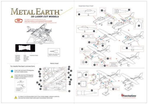 Jednotlivé diely vyberte z kovových plátkov, v prípade potreby použite malé štiepacie nožnice (nie sú súčasťou). Dieliky sa spájajú k sebe pomocou zámkov tvorených úchytom (zobáčikom) a otvorom. Zobáčik ohnite pomocou malých tenkých klieští (nie sú súčasťou) a postupne spojte všetky zámky až vznikne veľmi realistický majstrovský kúsok!
